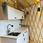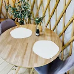 Det finns matplats utomhus och mathörna, där gästerna kan äta och dra nytta av te-/kaffebryggare. I köket finns även kylskåp, köksredskap och glas.